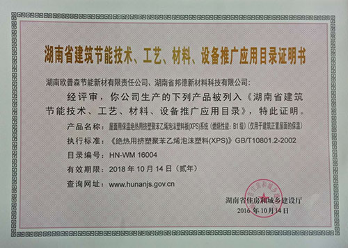 長沙外墻內(nèi)保溫備案證20181013