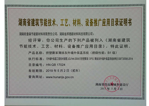 湖南省外墻外推廣證明2019-5-2